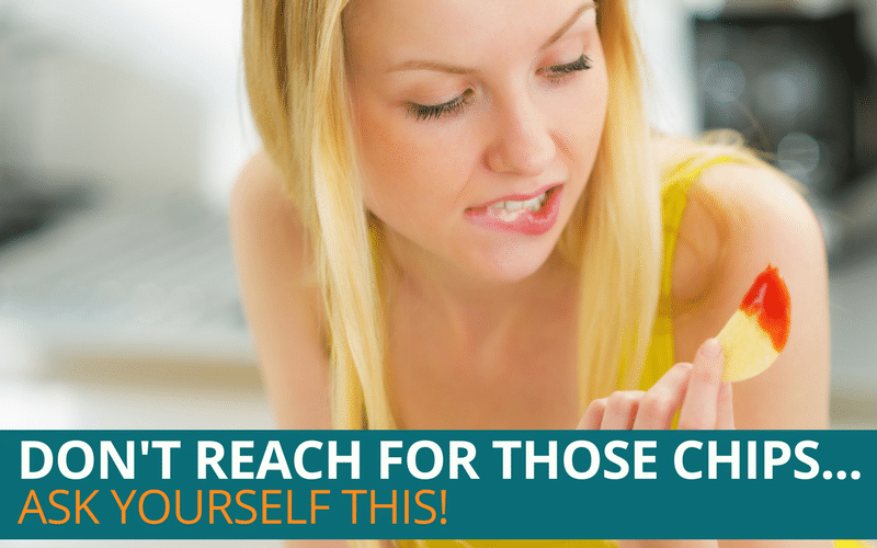 The first step to real change is ACKNOWLEDGING what’s going on. Before that hand hits the chips, get real with yourself and check in. Don’t tell yourself you’ll only eat 2…which brings me to the second step.